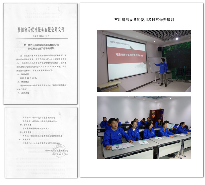 常用清洁设备的使用及日常保养培训的通知桂家美【2015】11号