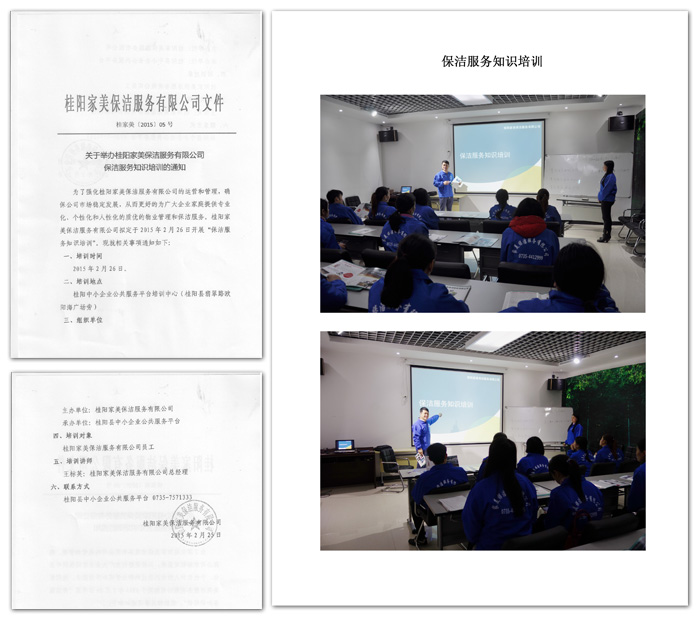 岗位清洁内容及标准培训的通知桂家美【2015】20号