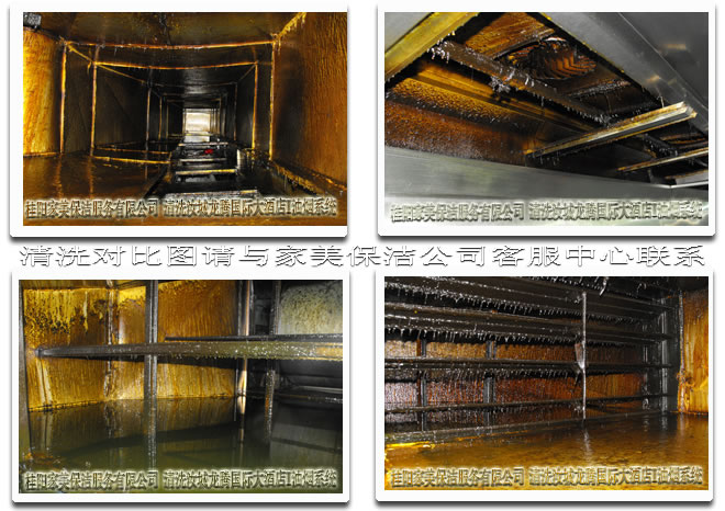 我公司针对国内部分油烟管道的复杂性,研制出适合任何异形管道的清洗方法,工程已经涵企事业单位、宾馆酒店、大型商场超市、医院、车站、学校等各种使用排油设备的餐厅食堂场所,并得到了客户的一致好评和行业的推荐